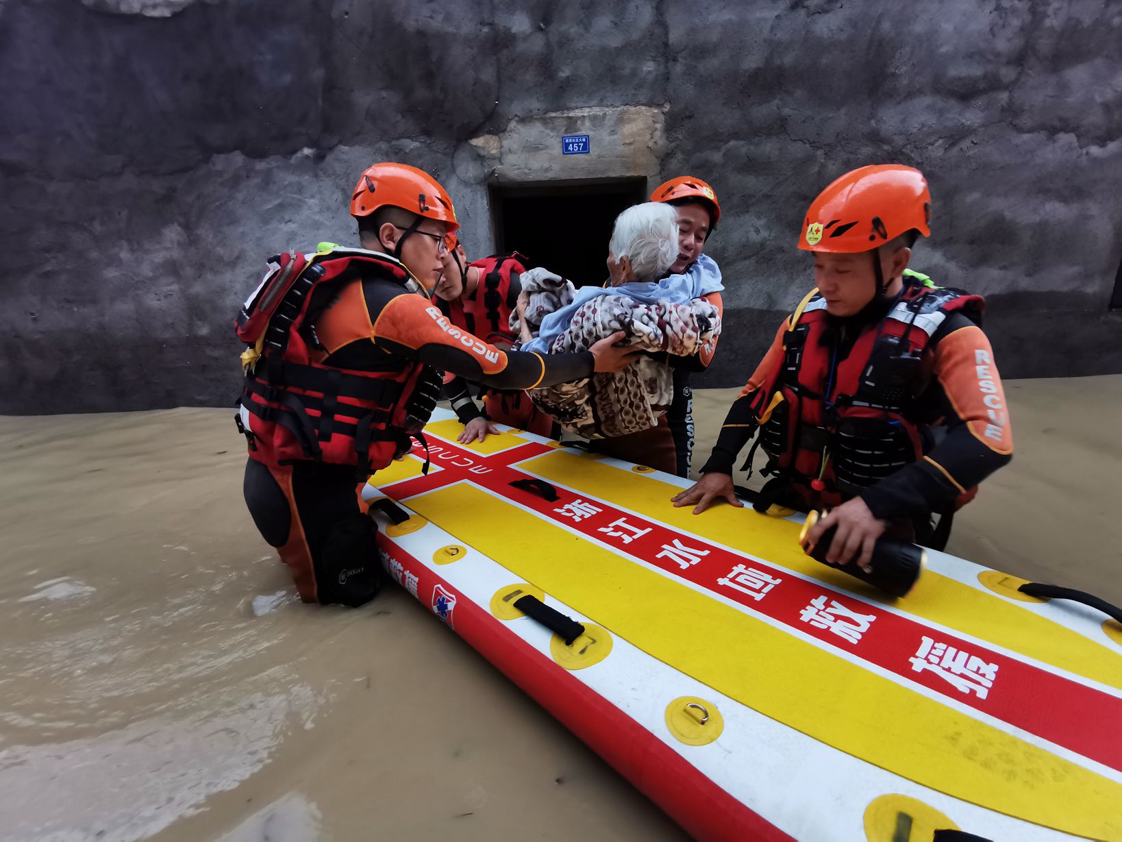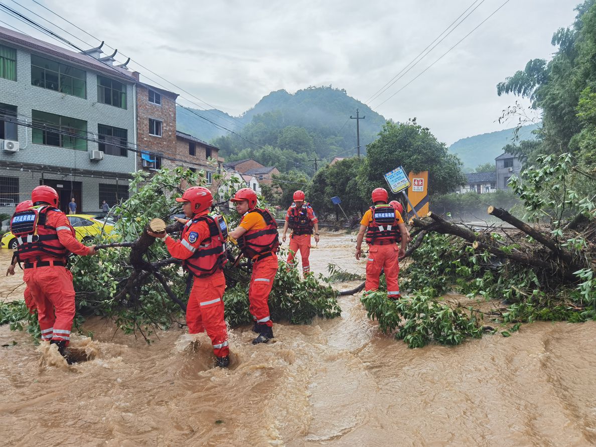 4支红十字救援队共出动队员33人,配备10艘冲锋舟,救援浆板、铁锹等救援物资,在5点左右陆续赶到陶朱街道、大唐街道、五泄、马剑等地展开救援,截至目前,共转移群众120余人。