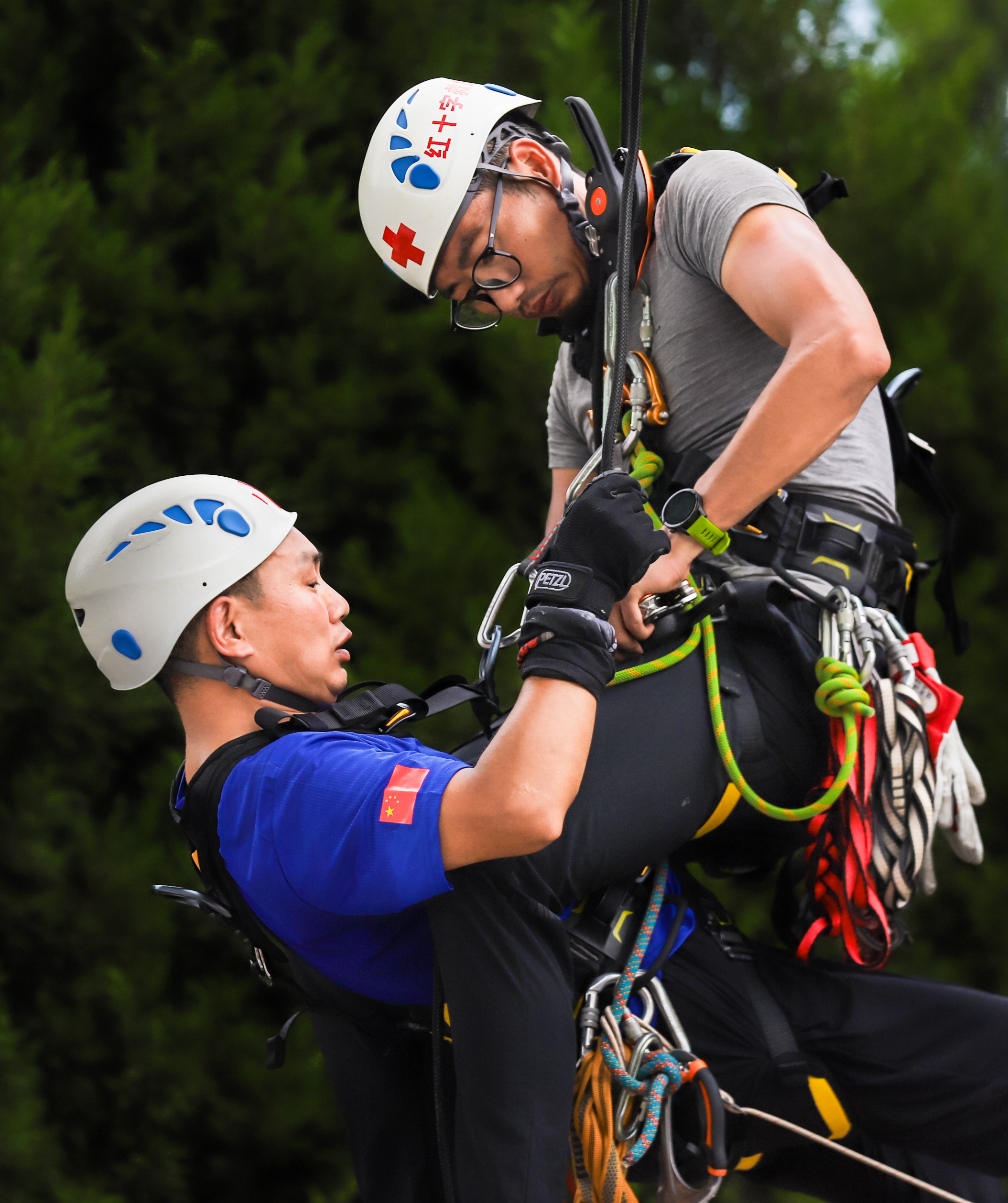 骄阳似火的七月,在户外静静地待上几分钟都会让人热出一身汗,但有这么一群人,却全副装备的在训练架上、在野外挥洒汗水。作为一名红十字志愿者,为了自己心中的梦想、为了救援能力的提升、为了更好地为有需求的群众提供帮助而努力着。