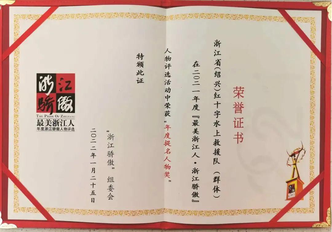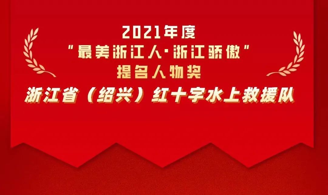 浙江省(绍兴)红十字水上救援队斩获2021年度“最美浙江人·浙江骄傲”提名人物奖。